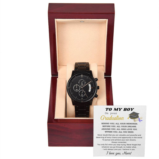 Perfect Graduation Gift - Congratulations - Black Chronograph Watch